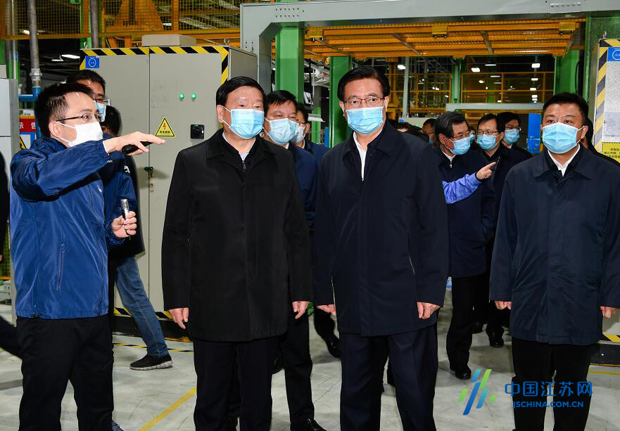 (娄勤俭书记在无锡SK海力士半导体(中国)有限公司考察疫情防控和企业复工复产。肖勇摄)