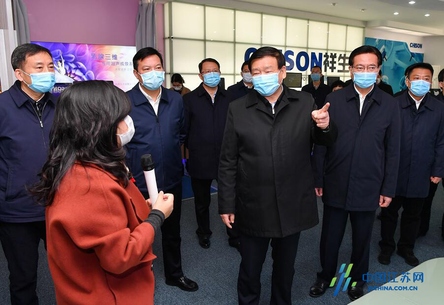 (娄勤俭书记在无锡祥生医疗科技股份有限公司调研疫情防控和企业复工复产。肖勇摄)
