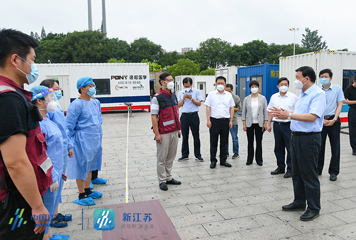 设在鸿福路竹西文化广场的方舱核酸检测实验室,于8月5日起投入使用,正快速检测送来的采样。娄勤俭详细询问实验室的操作流程、准确率和效率,叮嘱做好工作人员防护,确保实验室安全高效发挥作用。他说,大规模核酸检测是尽快摸清底数、做到精准管控的重要条件,一定要科学组织、提高效率,确保检测结果及时准确;要引导群众戴好口罩、保持好距离,严防聚集感染。