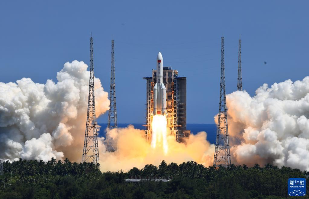 2022年7月24日,搭载问天实验舱的长征五号B遥三运载火箭,在我国文昌航天发射场点火发射。新华社记者李刚摄