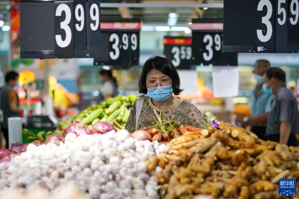 市民在江苏省无锡市经开区华润万家超市购物(2022年7月7日摄)。江苏省无锡市在做好疫情防控的同时,积极制定相关方案,制作城市保供地图,组织大型商超、市场正常运营,全力保供稳价,端稳市民“菜篮子”。新华社记者李博摄