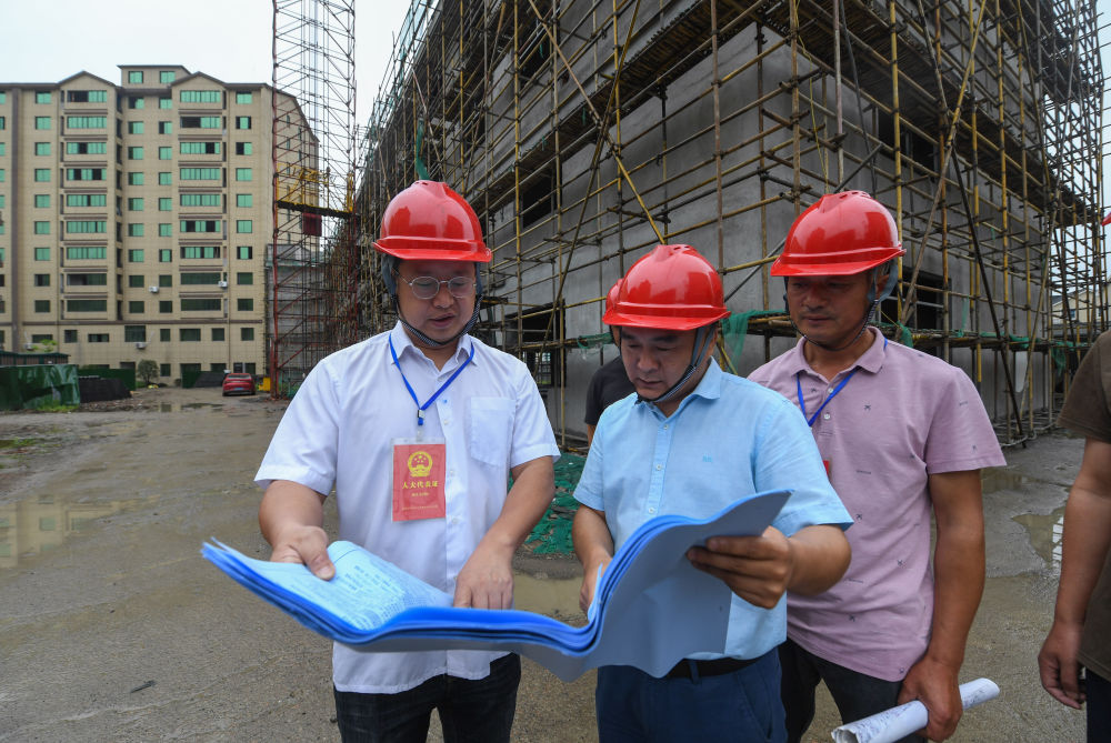 在浙江省湖州市吴兴区东林镇星火村,当地人大代表及村民代表对星火村农民新村建设项目的施工进展情况进行监督检查(2021年6月2日摄)。新华社记者徐昱摄
