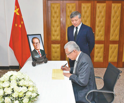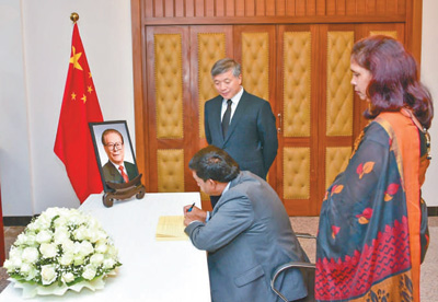 12月2日,斯里兰卡总理古纳瓦德纳在中国驻斯里兰卡大使馆吊唁江泽民同志。新华社记者车宏亮摄