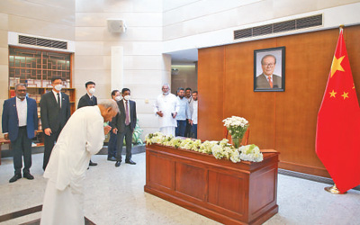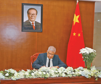 十二月二日,斯里兰卡总统维克拉马辛哈在中国驻斯里兰卡大使馆吊唁江泽民同志。萨米拉摄(新华社发)