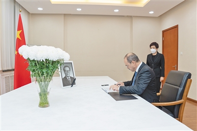 12月5日,乌兹别克斯坦总理阿里波夫在中国驻乌兹别克斯坦大使馆吊唁江泽民同志。高山摄(新华社发)