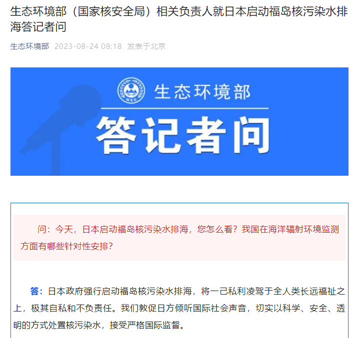 问:今天,日本启动福岛核污染水排海,您怎么看?我国在海洋辐射环境监测方面有哪些针对性安排?
