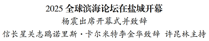 9月24日,2025全球滨海论坛在盐城开幕。全国政协副主席、农工党中央常务副主席杨震出席开幕式并致辞。省委书记信长星、自然资源部部长关志鸥、瓦努阿图渔业海洋事务部部长诺里斯·卡尔米特、国家林业和草原局副局长李金华致辞。省长许昆林主持。
