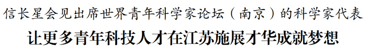 9月19日,省委书记信长星会见出席世界青年科学家论坛(南京)的科学家代表。