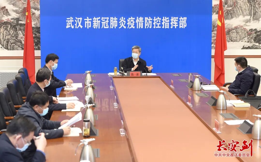 2月25日,中央指导组副组长、中央政法委秘书长陈一新坐镇武汉指挥部,分析当前战疫形势,提出武汉疫情形势已从高位运行期向中位运行期转变,要因时制宜、因势而动,把群众关注的焦点热点问题作为着力点,创新完善指导督查方式,“走下去”“请上来”“召集来”,了解掌握战疫实情,提高指导和督查工作的前瞻性、针对性和实效性,坚定不移打好武汉保卫战,不获全胜不轻言成功。