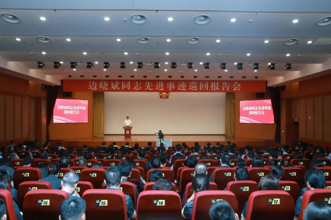 报告会上,边晓斌同志先进事迹报告团成员用真挚的感情、质朴的语言,深情追忆了边晓斌同志在“无私无我”中“尽职尽责”的感人事迹和宝贵精神。边晓斌同志生前系仪征市人民法院党组副书记、常务副院长。2023年12月14日,边晓斌同志在执行案件现场勘查任务时不幸因公殉职,年仅49岁。边晓斌同志奋斗在基层司法审判第一线近30年,他忠于职守、担当作为,在不同的岗位上均创造了过硬的业绩,用生命大爱践行了对党忠诚、服务人民的铮铮誓言,赢得了人民群众的广泛赞誉。