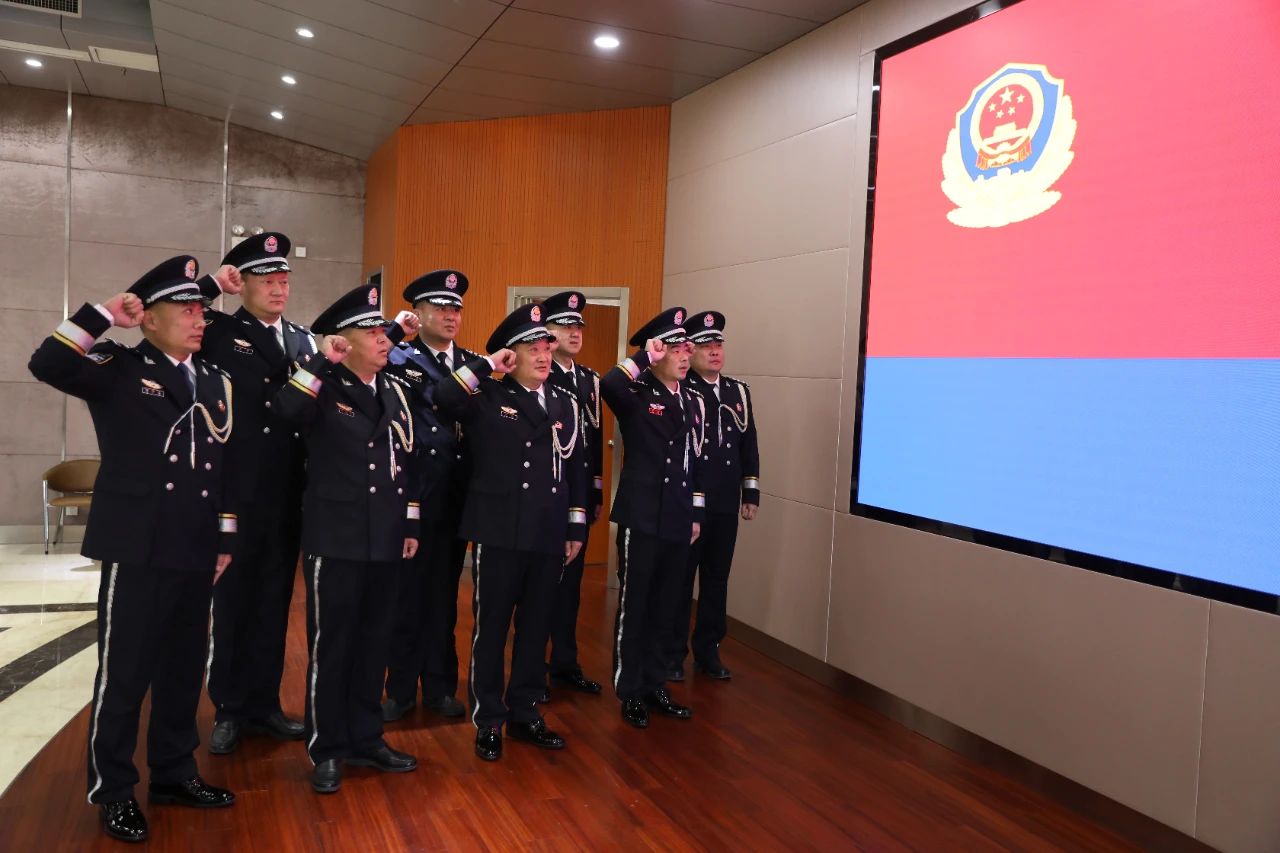 “我志愿成为中华人民共和国人民警察,献身于崇高的人民司法事业……”全体干警警容严整,神情庄重,面向警旗重温入警誓词。句句誓词铿锵有力,声声誓言掷地有声,让每位干警再次回溯从警的初心,坚定为党和人民事业不懈奋斗的信念,时刻牢记肩负的神圣职责与光荣使命,以更加饱满的热情和昂扬的斗志投入到司法警务工作中。