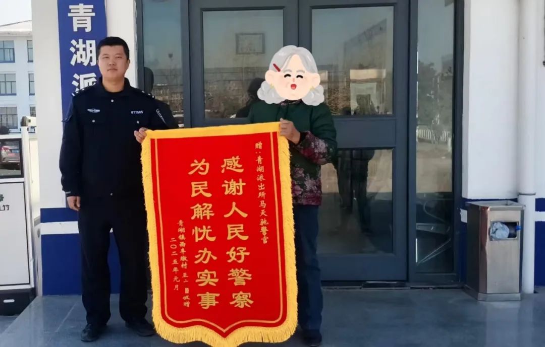 值班民警马天驰在了解情况后,一边安慰王大妈情绪,一边制定寻亲方案。“我这里只有儿子的一张一代身份证,不知道你们能不能用上。”王大妈颤颤巍巍地将包里儿子吴某的身份证递给了民警。虽然关于吴某的信息少之又少,但民警还是第一时间查询关联信息。每搜寻到一个关联电话,民警便立即拨打过去。面对一次又一次“不好意思,我不认识这个人”的回复,民警并不气馁,一直重复搜索、拨打的动作。功夫不负有心人,经过两天的努力,民警终于成功找到了吴某,得知其目前在南京生活。民警第一时间与其取得联系,与其说明其母亲的情况。得知母亲一直挂念自己,吴某在电话那头泣不成声。随后,民警将王大妈的电话提供给吴某,时隔22年,再次听到儿子的声音,王大妈激动不已。吴某和母亲约定,两天后到南京见面。“明天我就要去南京和儿子见面了,真的很激动,同时也非常感谢你们。”临行前,王大妈特地制作一面锦旗送到民警手中以示感谢。