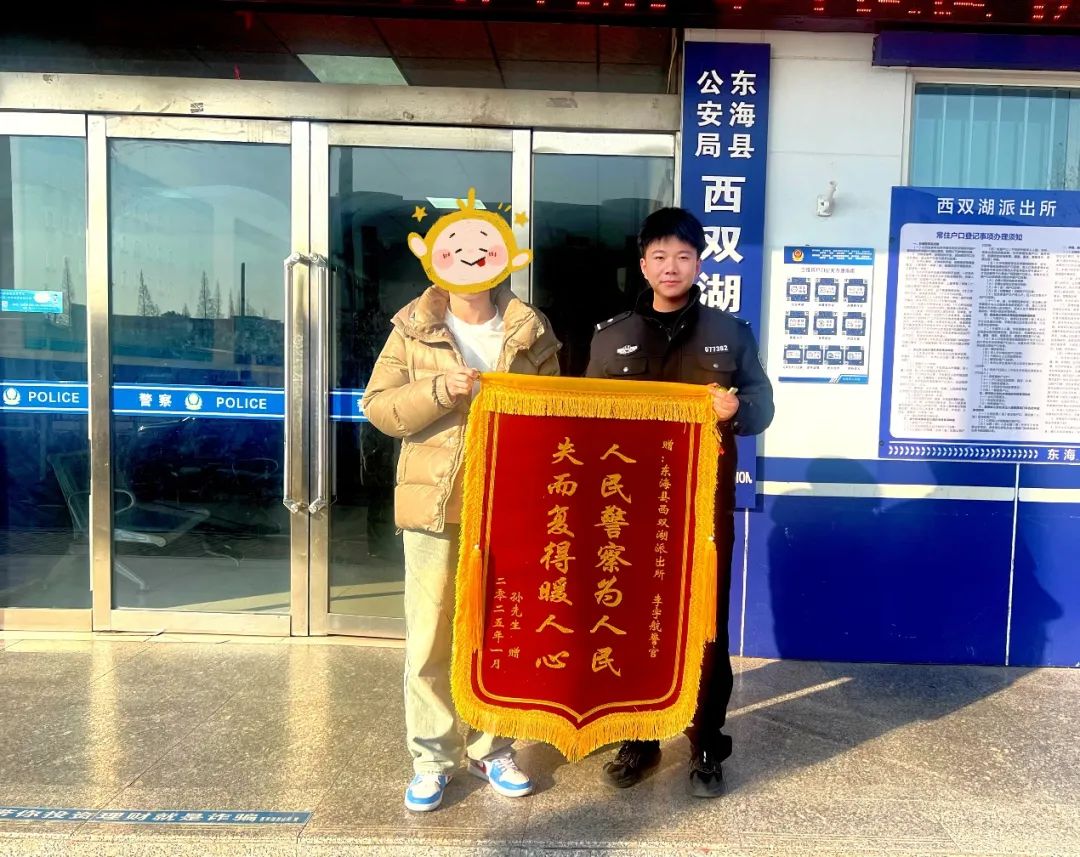 1月22日下午,家住牛山街道的市民孙先生兴高采烈地来到西双湖派出所,将一面印有“人民警察为人民 失而复得暖人心”的锦旗交到民警手中,感谢他们帮助其找回被人盗走的电动车。
