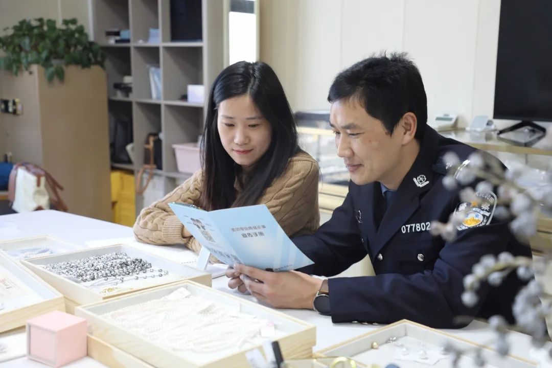 “你们知道在直播售货时,哪些行为可能涉嫌虚假宣传?哪些行为可能侵权吗?”活动中,民警盛金利针对电商直播行业的特点,围绕知识产权保护、网络诈骗防范等热点话题,通过发放宣传单、现场答疑解惑等方式,向水晶直播平台运营者、主播们宣传相关法律法规和行业规范,并提醒他们遇到问题通过理性、合法的途径解决,学会运用法律武器维护自身合法权益。随后,民警辅警还根据实际需求,给予专业的指导建议,积极共建警企“连心桥”,从源头上督促各个直播间合规经营。