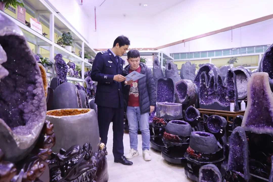 东海县是世界级水晶原料集散地和水晶交易中心,目前全县拥有水晶加工企业3000多家,从业人员达30万人,其中,电商从业人员超过5万人。新年伊始,为了护航水晶产业发展,连日来,东海县公安局水晶城派出所民警走进辖区水晶企业及水晶电商直播基地,对企业负责人、销售人员及电商主播进行法治培训,普及知识产权保护、预防涉税违法犯罪、信息安全保护等法律常识。
