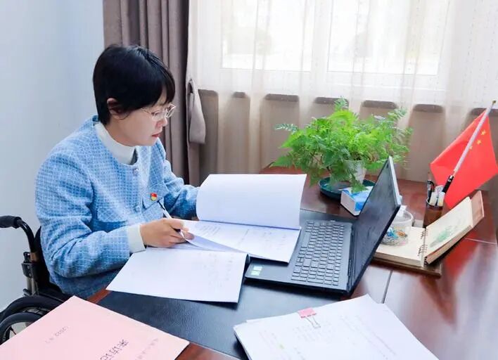 顾婷婷并不止步于此,自身伤后维权的艰辛,以及与其他残疾人朋友的深入交流,让她意识到法律才是捍卫权益最有力的武器。“我是不是也能学习法律,有一天可以帮助更多人?”这个看似遥不可及的梦想,悄悄在她心中发了芽。她毅然踏上了法考之路,买书、听课、整理笔记,她把所有精力投入法律知识的学习。由于胸部以下完全瘫痪,连保持坐姿都异常艰难,但她“坐着学不了,就躺着学;躺久了,就趴着学。”陌生的法律概念、错综复杂的法律关系,她一点点啃下来,一步步理清楚。2019年,她成功通过国家统一法律职业资格考试,2021年,经过实习考核成为了一名正式执业律师。梦想,终于照进现实。